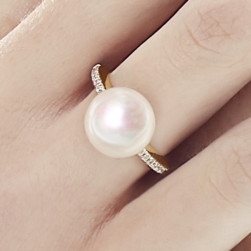 Особенности Кольцо женское с белым жемчугом и кубиками циркония Majorica Enchantment