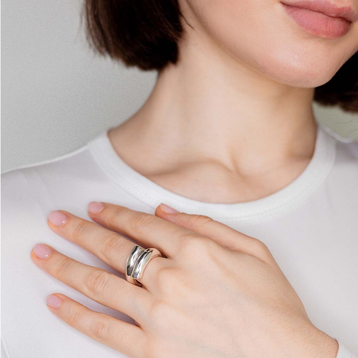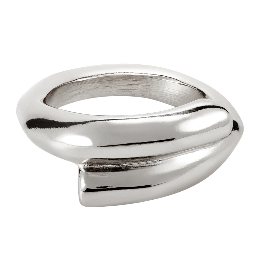 Кольцо в виде двух заполненных трубок, находящих одна на другую. Это кольцо изготовлено вручную в Испании с использованием ремесленных техник - от литья из металлического сплава до посеребрения толщиной 15 микрон, вес кольца 10 г. Универсальный дизайн позволяет носить это кольцо с другими предметами из разных коллекций.