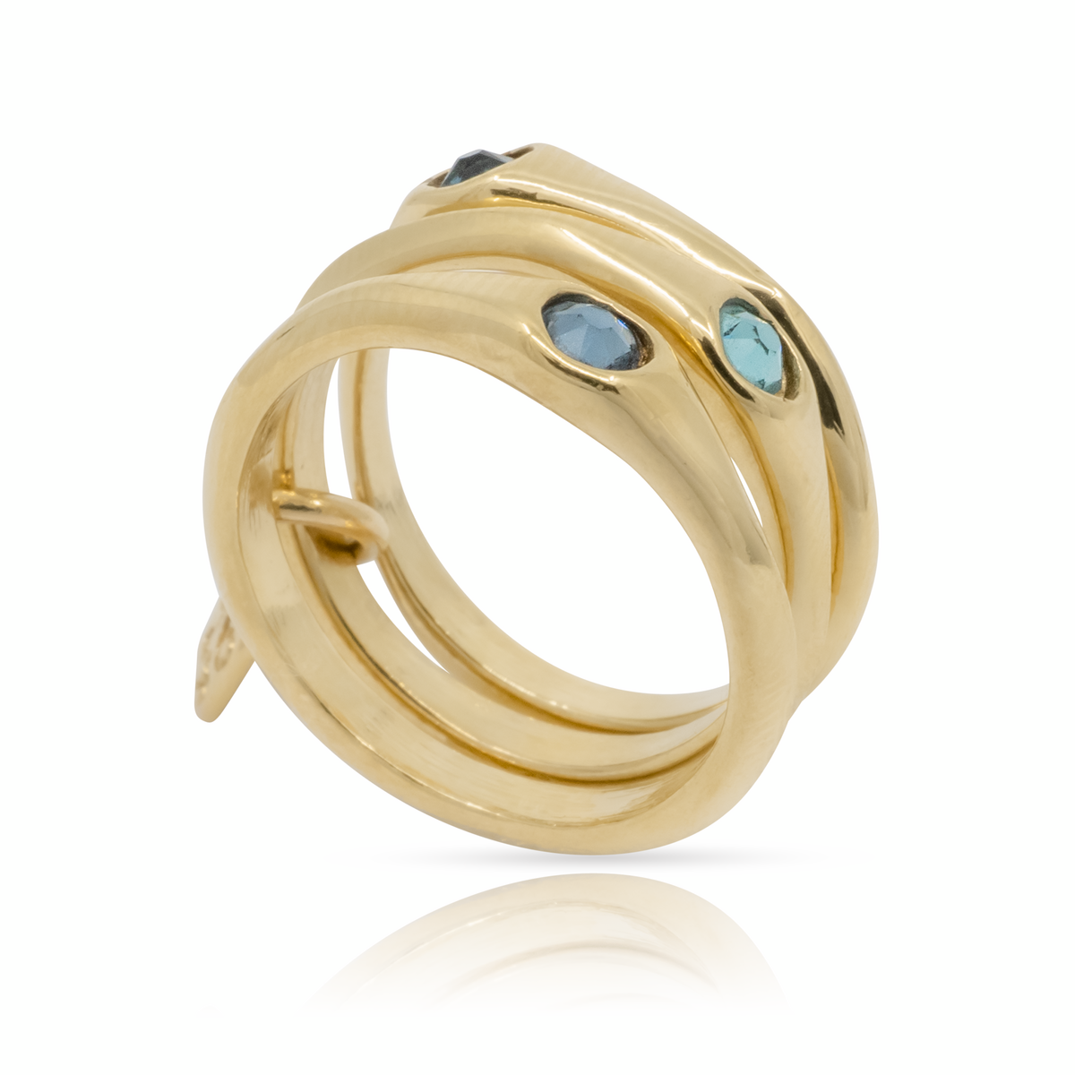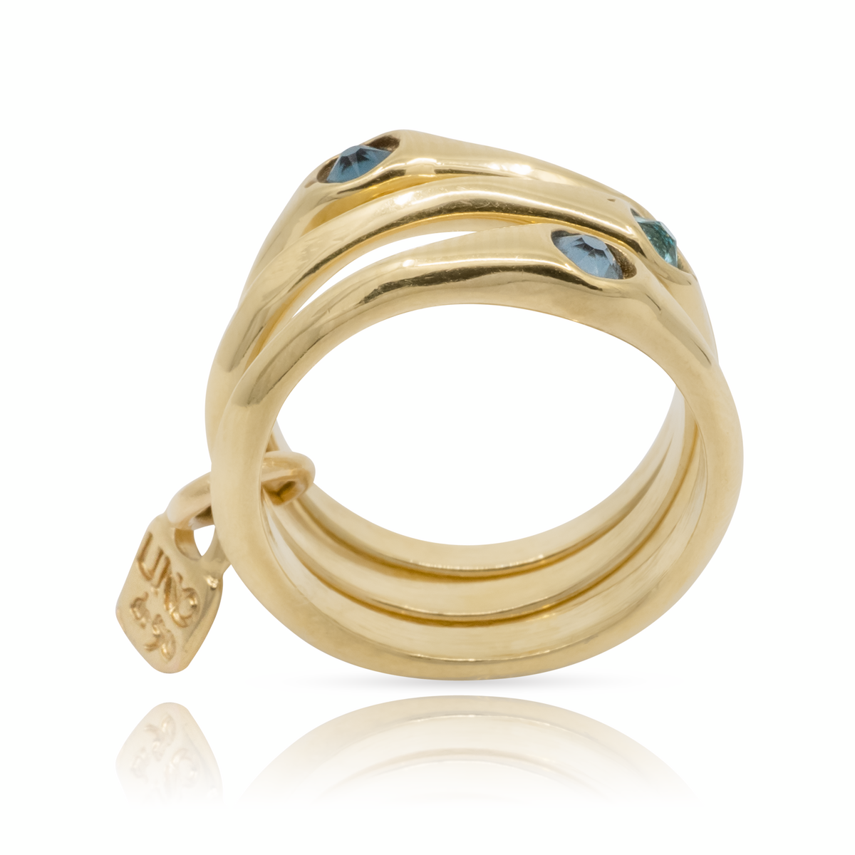 Золотое кольцо женское тройное с кристаллами Сваровски UNOde50 Happy blue