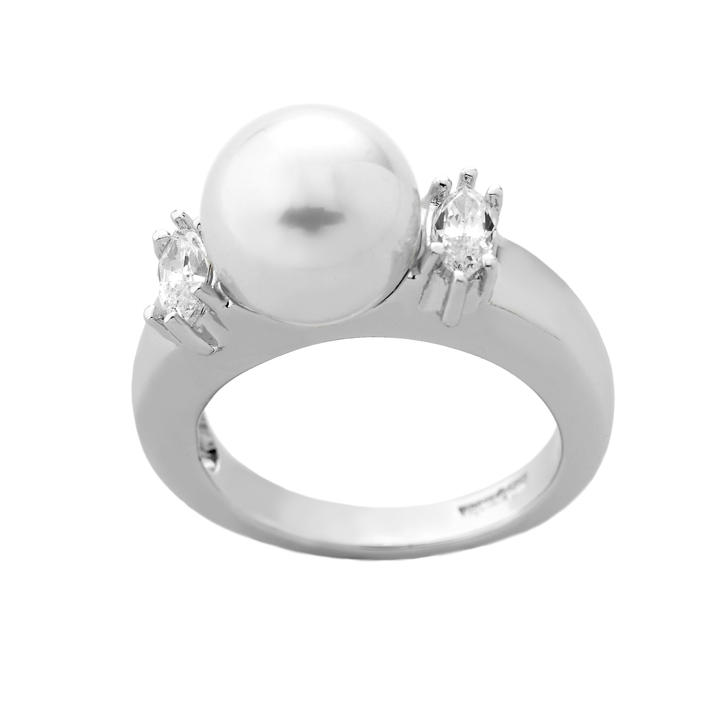 Серебряное кольцо с органические жемчугом и фианитами Majorica Timeless