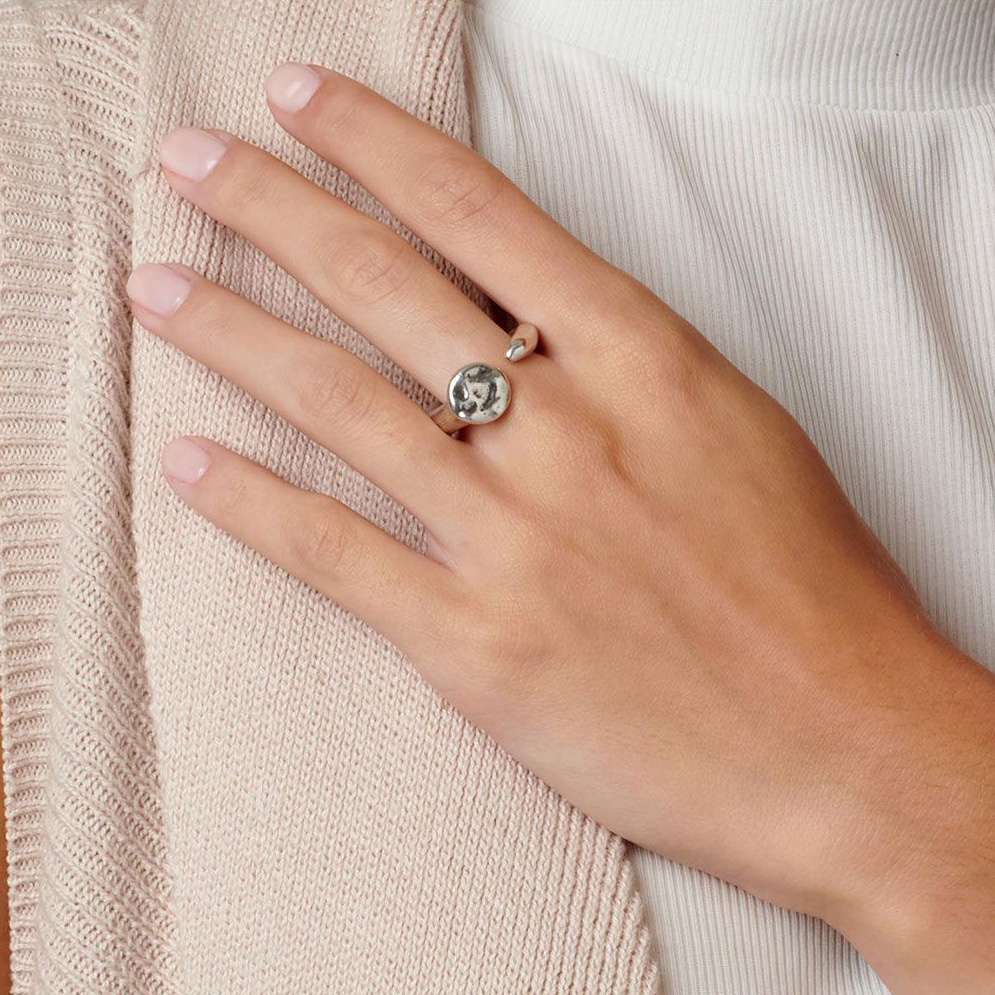 Кольцо “Nail” изготовлено из посеребренного металла, полностью ручная работа от испанских мастеров бренда UNOde50. Кольцо в форме полусферы с гравировкой названия бренда. Данная модель выгодно подчеркнет изящность вашей руки, а минималистичный дизайн изделия дополнит ваш безупречный стиль. Идеально подходит как для повседневного образа, так и для выхода в свет.