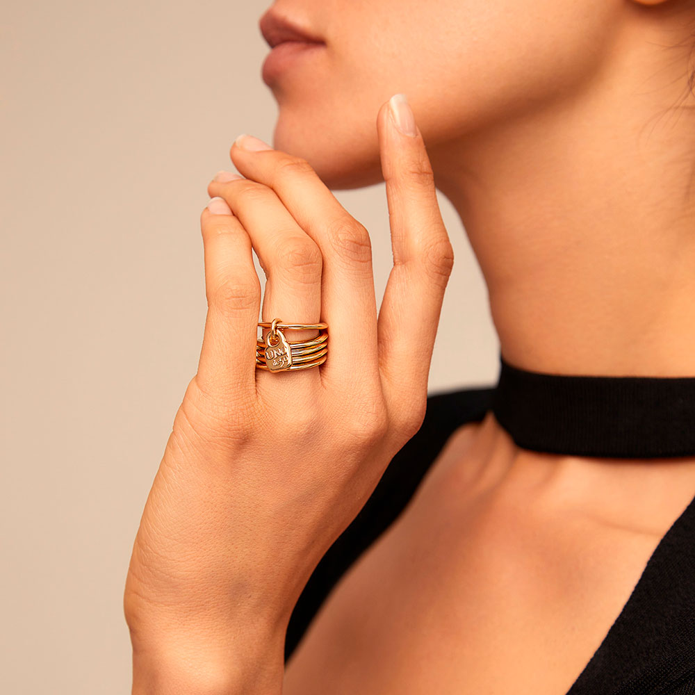 Золотое кольцо женское многослойное Под замком UNOde50 Prisoner