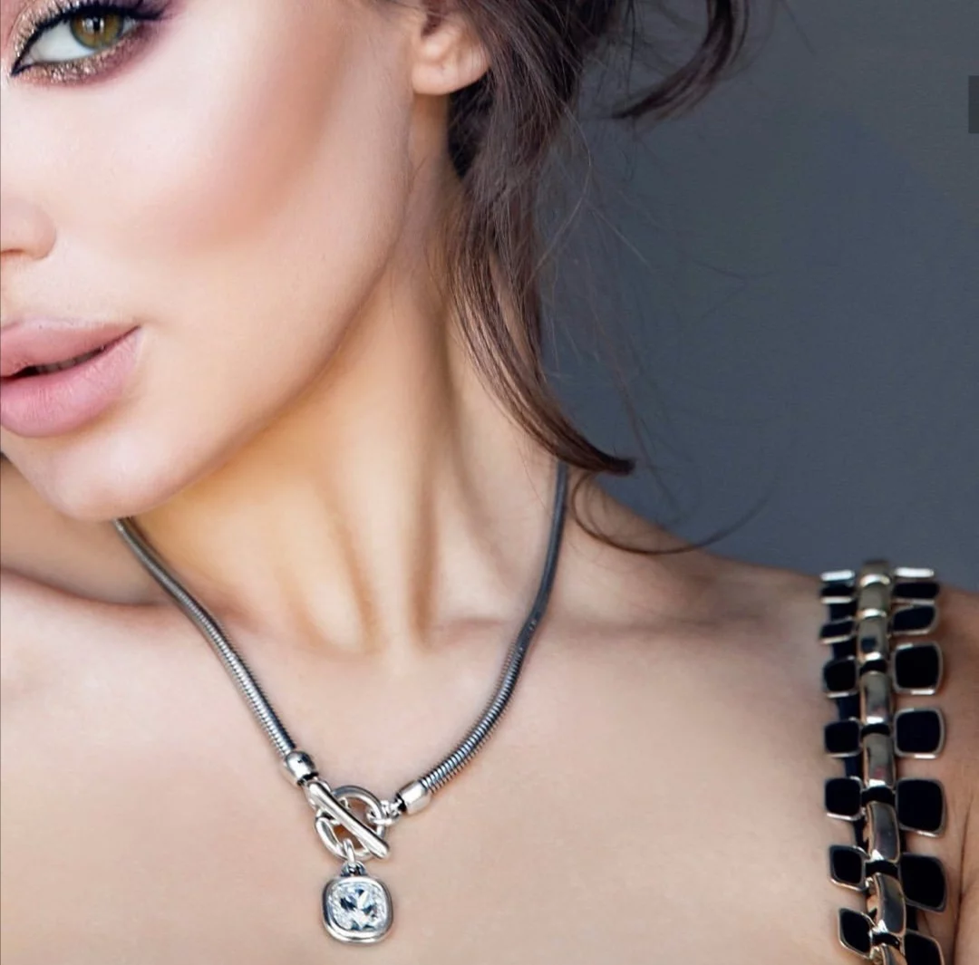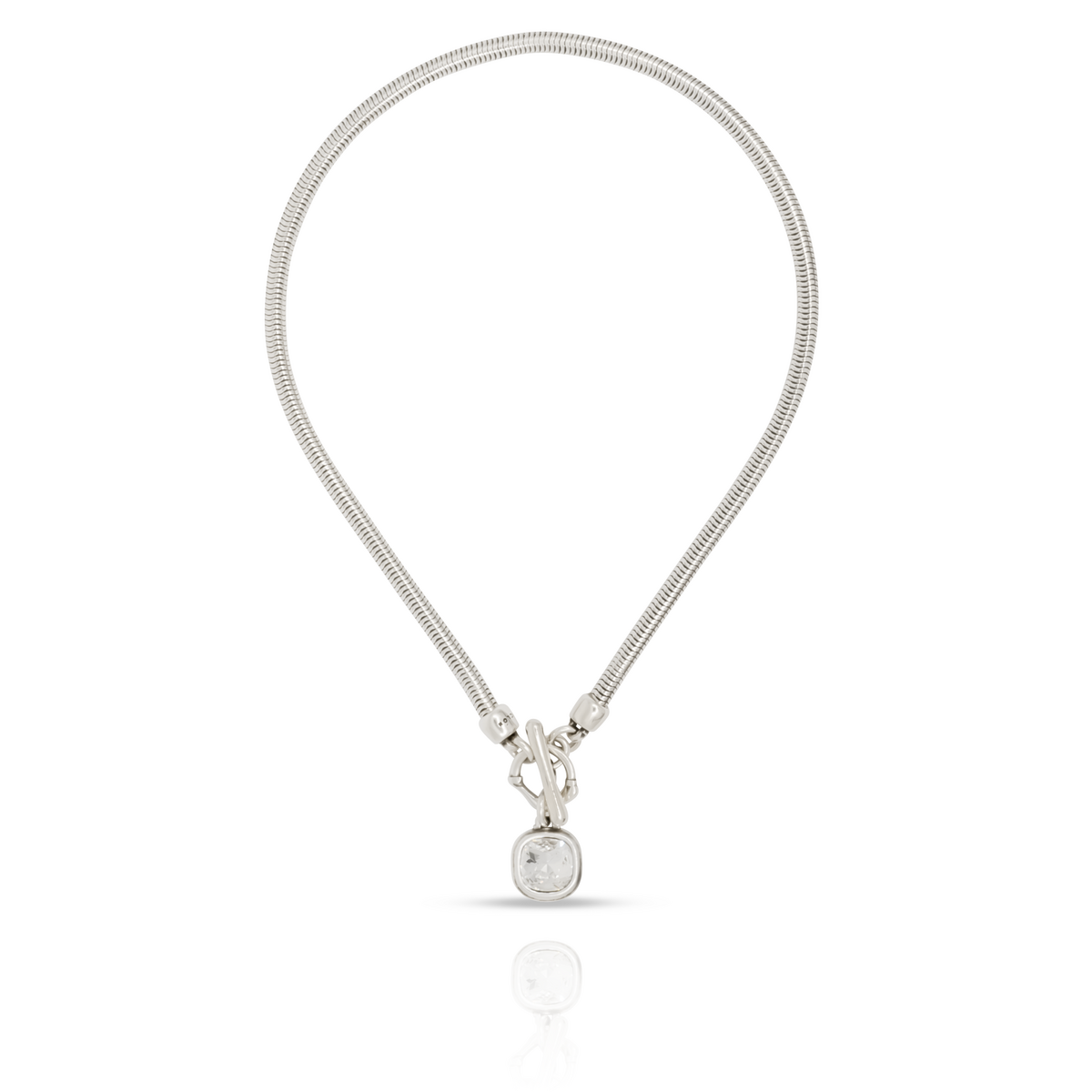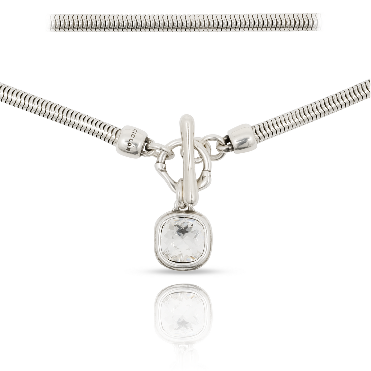 Описание Серебряное колье с кристаллом Сваровски Ciclon Solitario