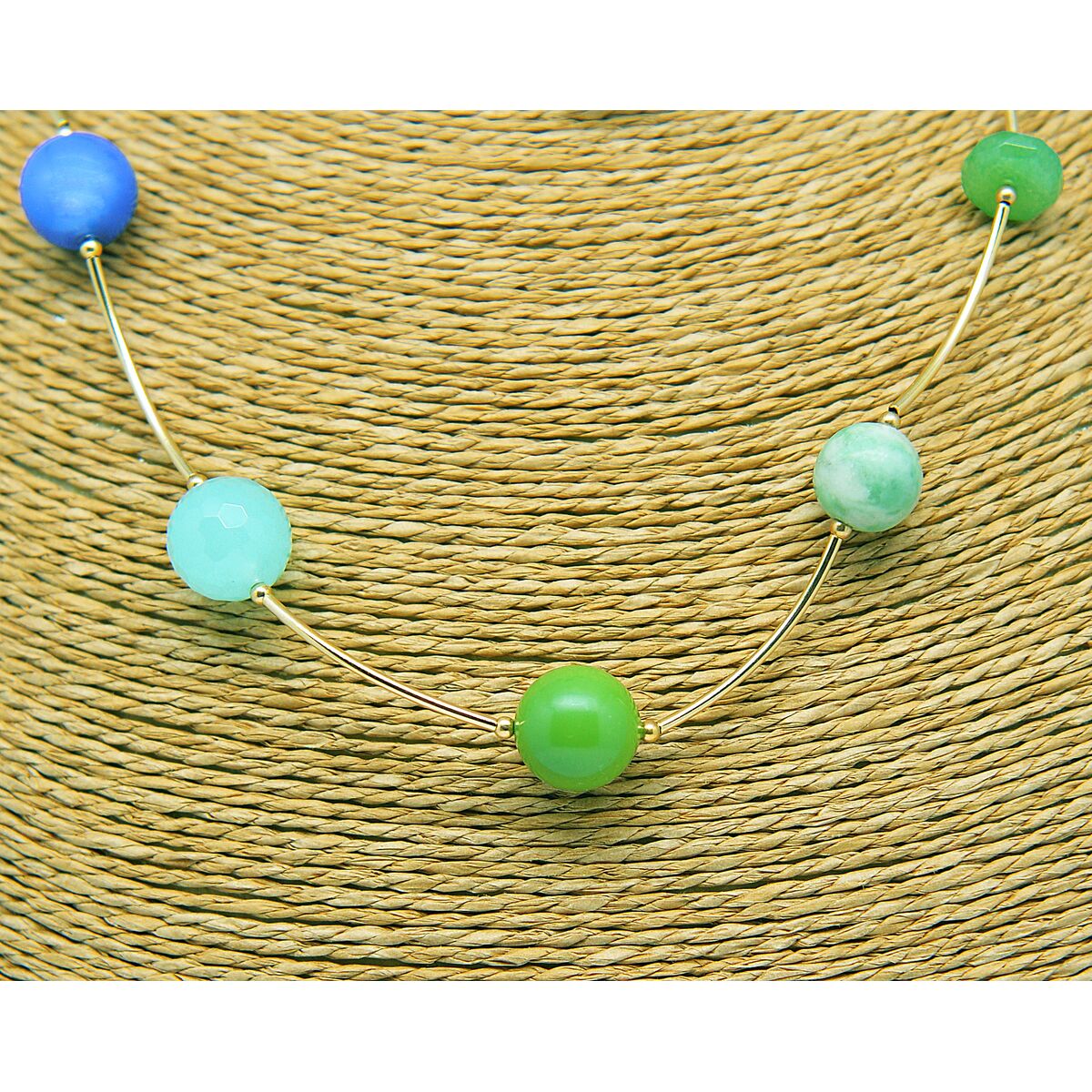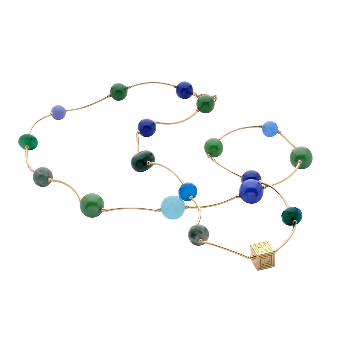Золотое колье женское с жемчугом Pertegaz Tubo Blue Cucumber
