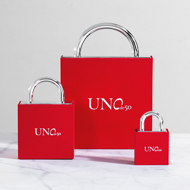 Уникальные украшения ручной работы UNOde50. Коробка в виде фирменного замка красного цвета.