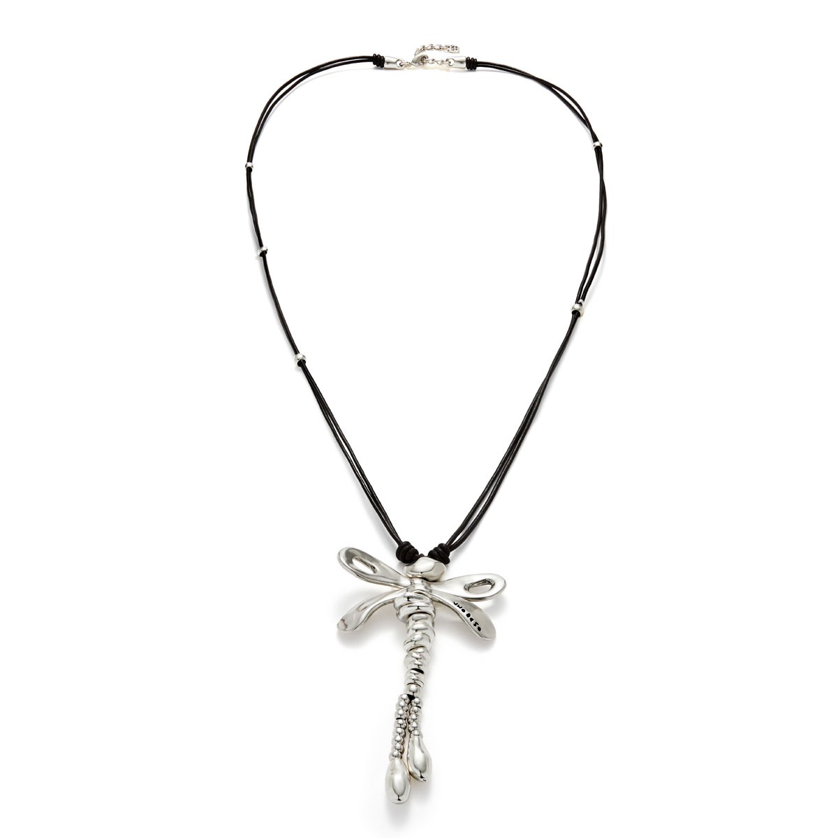 Описание Серебряное ожерелье женское с натуральной кожей Стрекоза Ser Rebelde