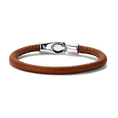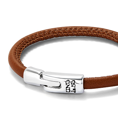 Браслет из кожи верблюжьего цвета с застежкой с серебром из коллекции SER NATURAL — выбор тех мужчин, которые предпочитает простоту и лаконичность, но хотят проявить свою индивидуальность. Изделие представляет собой круглый кожаный ремешок с застежкой из уникального сплава с покрытием из стерлингового серебра. Украшение выделяется за счет редкой окраски, называющейся Camel, потому что напоминает цвет шерсти верблюда. Насыщенный теплый оттенок, сочетающий золотисто-бежевые и коричневые тона, выглядит очень благородно и нетривиально. С таким аксессуаром вы точно произведете впечатление неординарной личности.