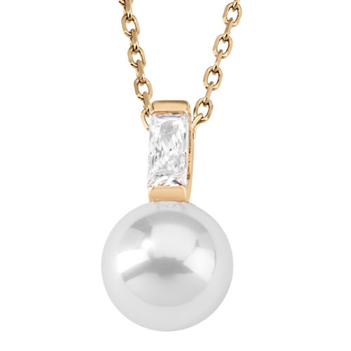Описание Золотое колье с белым жемчугом и фианитами Majorica Tu Y Yo