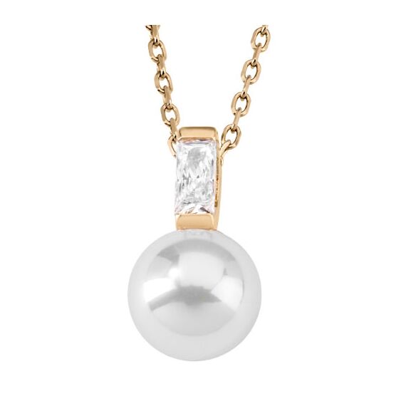 Золотое колье с белым жемчугом и фианитами Majorica Tu Y Yo