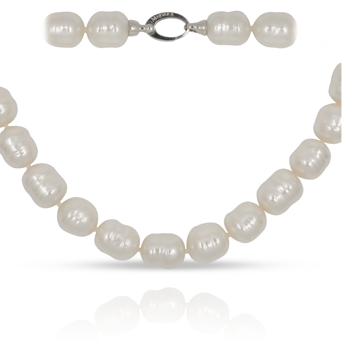 Ожерелье Majorica из коллекции BAROQUE, серебро 925 пробы, гальваническое покрытие родием, вставки: жемчуг органический. Гарантия 2 года на украшение в части металла, гарантия 10 лет на жемчуг органический в части отслоения и потемнения. Произведено в Испании.