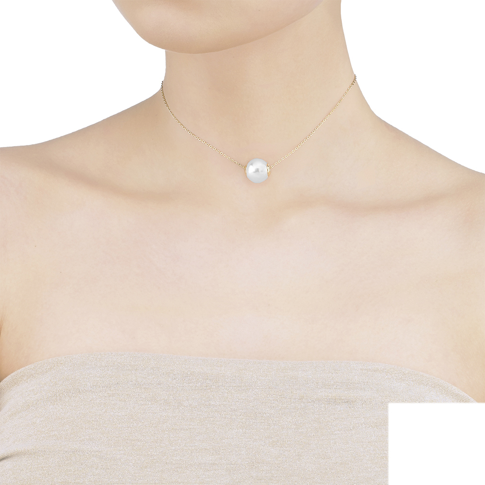 Золотое колье с подвеской из органического жемчуга Majorica Basic