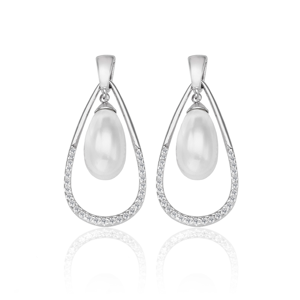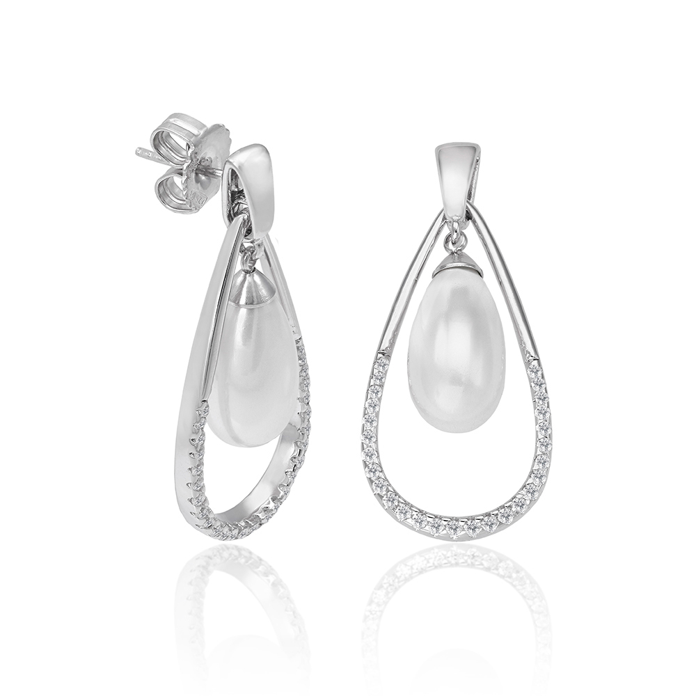 Описание Серебряные серьги с органическим жемчугом и фианитами длинные Majorica Noëlla