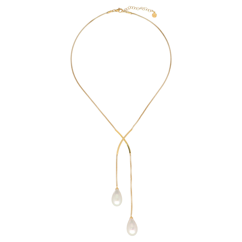 Золотое колье с подвесками из органического жемчуга Majorica Elixa