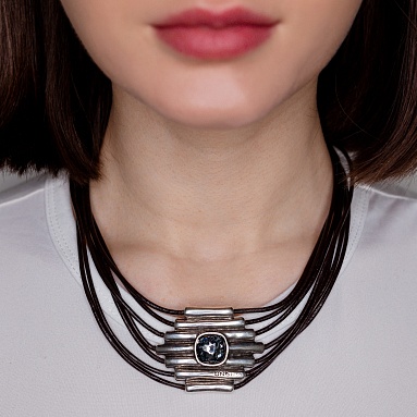 Уникальные украшения ручной работы UNOde50. Ожерелье "Attached" из коллекции Fearless. Размер L. Цвет серый.