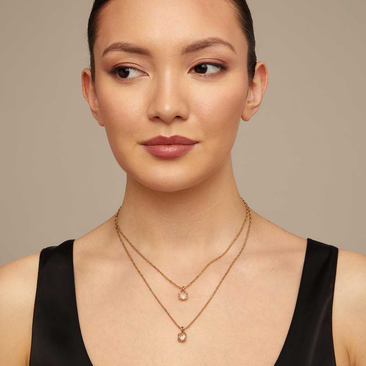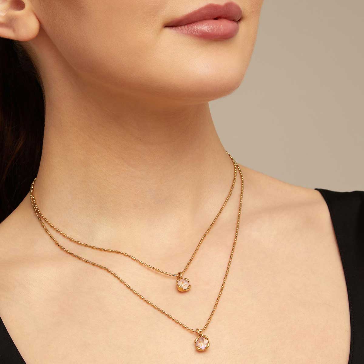 Описание Женское ожерелье двойное с золотом и кристаллами Сваровски UNOde50 Aura Pink