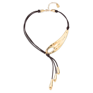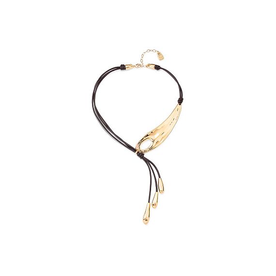 Описание Золотое колье женское на кожаных шнурках Крыло стрекозы UNOde50 Big leaf