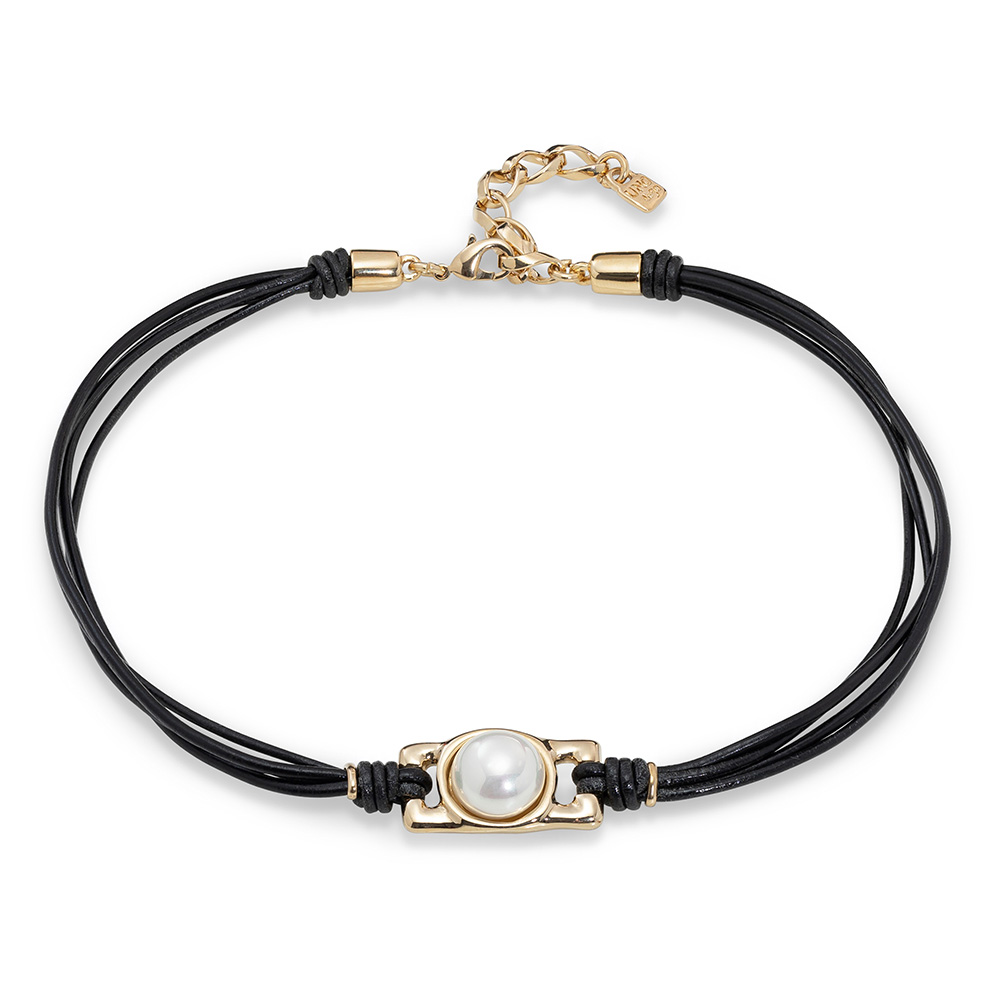 Описание Ожерелье с жемчугом и золотом на кожаных шнурках UNOde50 DARLING