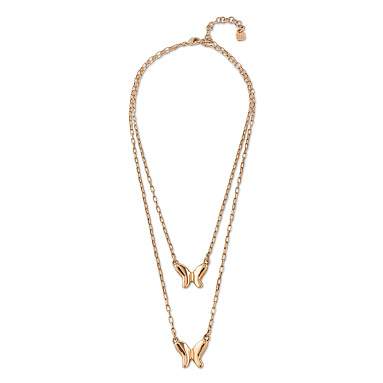 Особенности Золотое колье женское из двух цепочек разной длины с бабочками UNOde50 Doublefly