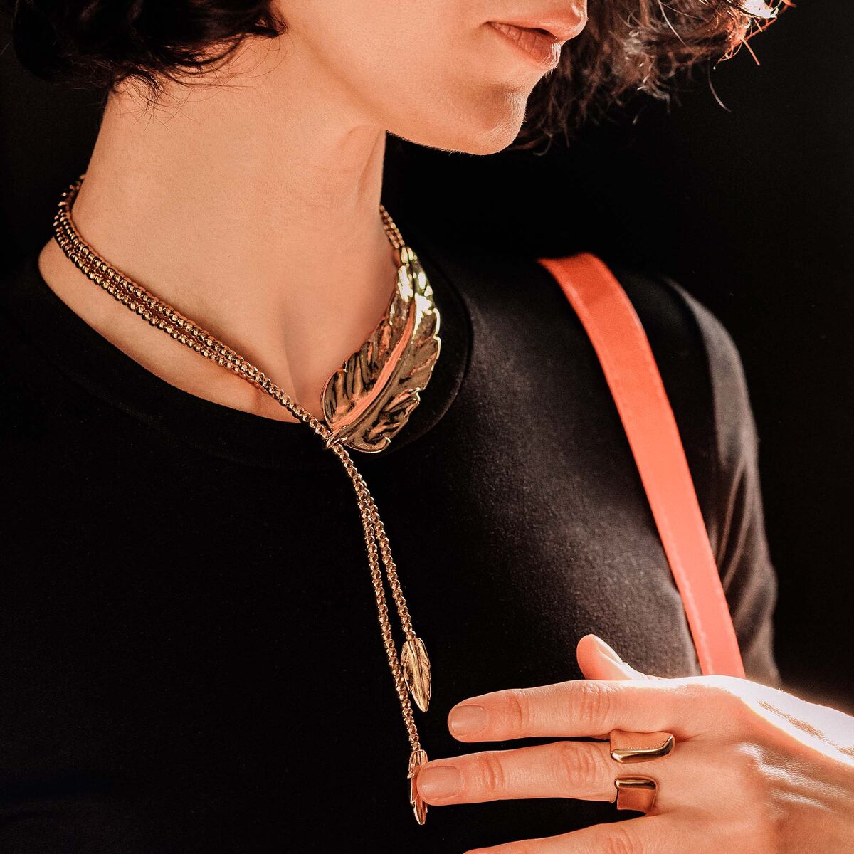 Описание Женское колье галстук с золотом Оперение UNOde50 Feather