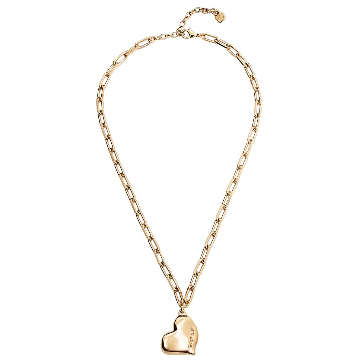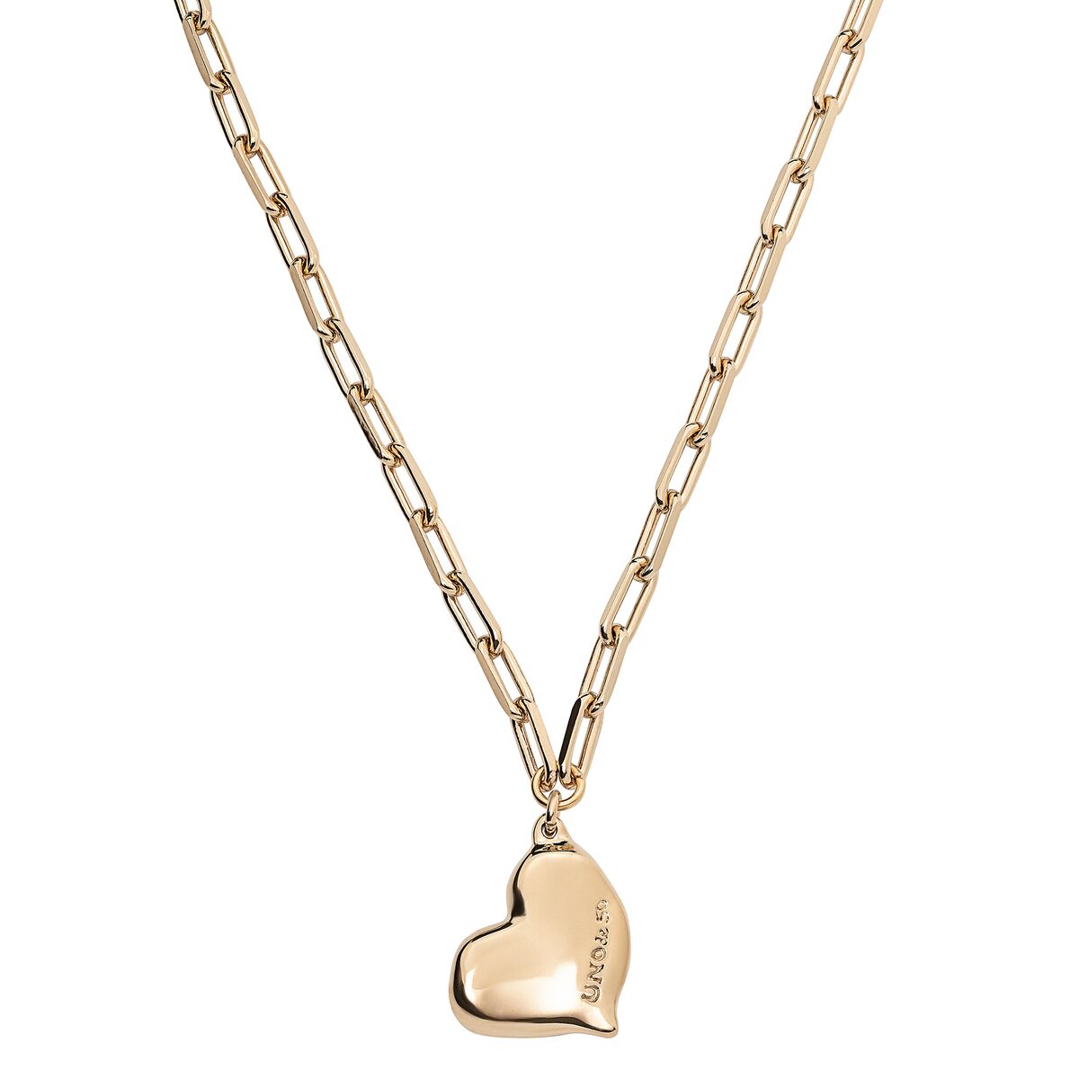 Ожерелье Heart Beat представляет собой цепочку из звеньев среднего размера с изображением культового сердца бренда. Он имеет застежку-карабин, позволяющую регулировать длину цепочки и весит 26,7 г. Это изделие изготовлено вручную в Испании с использованием позолоченного металлического сплава. Носите его с остальными украшениями коллекции Emotions или любыми другими украшениями бренда UNOde50.