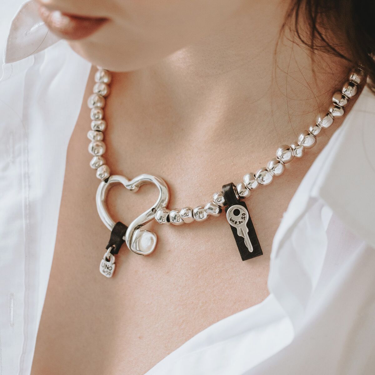 Особенности Серебряное ожерелье с сердцем в виде изогнутого гвоздя Искренность UNOde50 Heartfelt