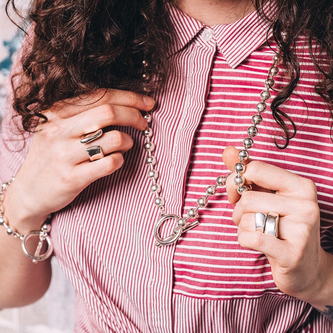 Описание Женское ожерелье с серебром из сферических бусин UNOde50 OFF/ON