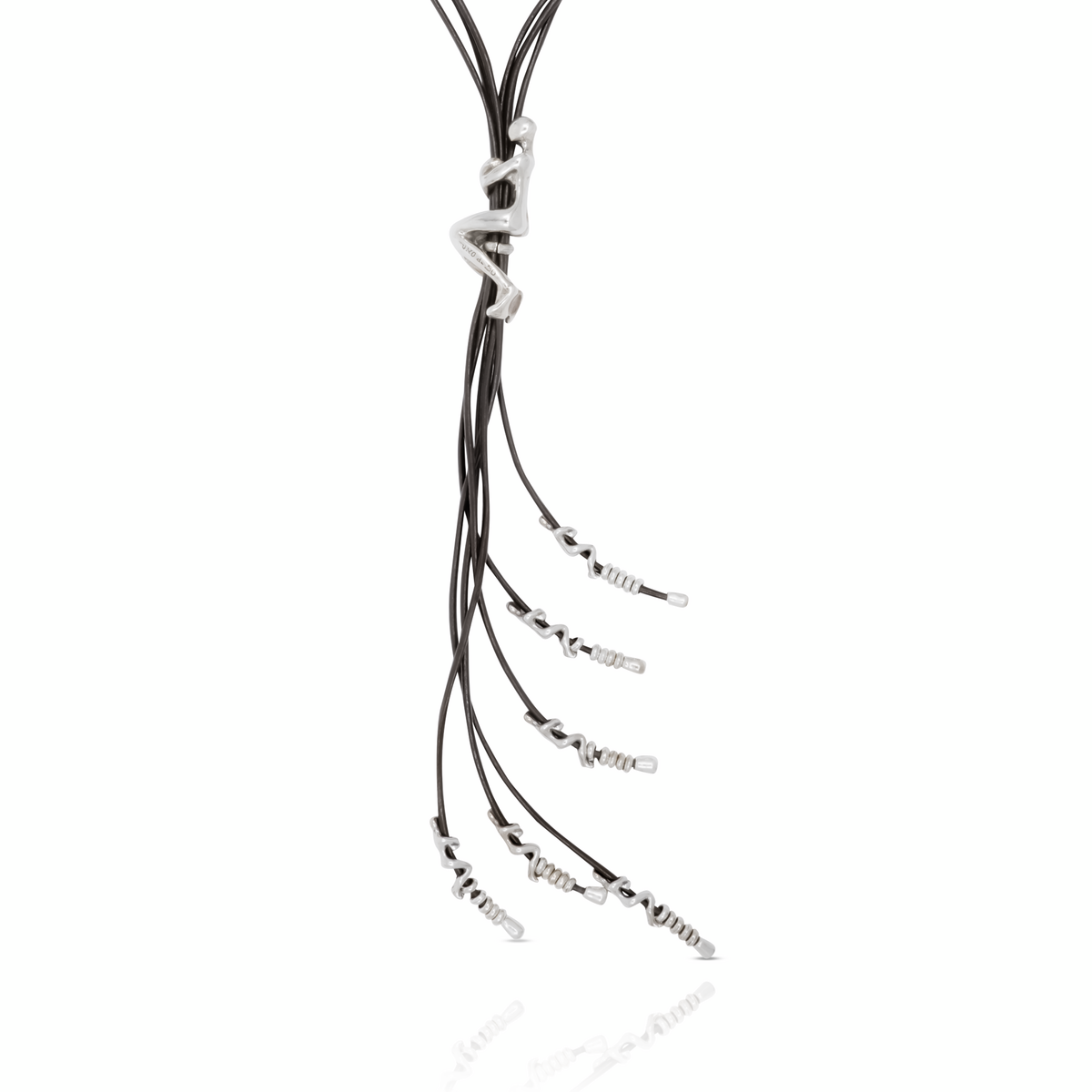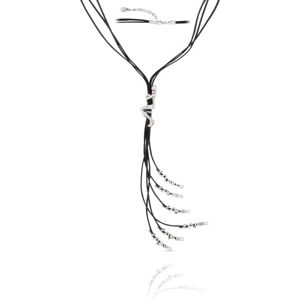 Серебряное колье галстук женское с натуральной кожей Скалолаз UNOde50 Skalator