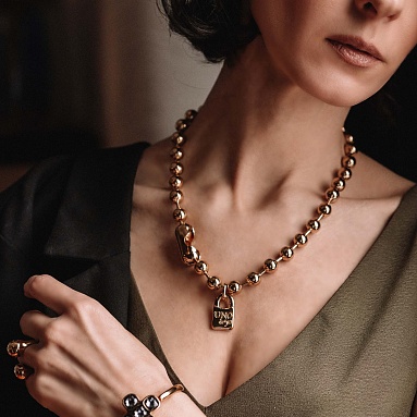 Особенности Золотое колье из сферических бусин Снежинка UNOde50 Snowflake