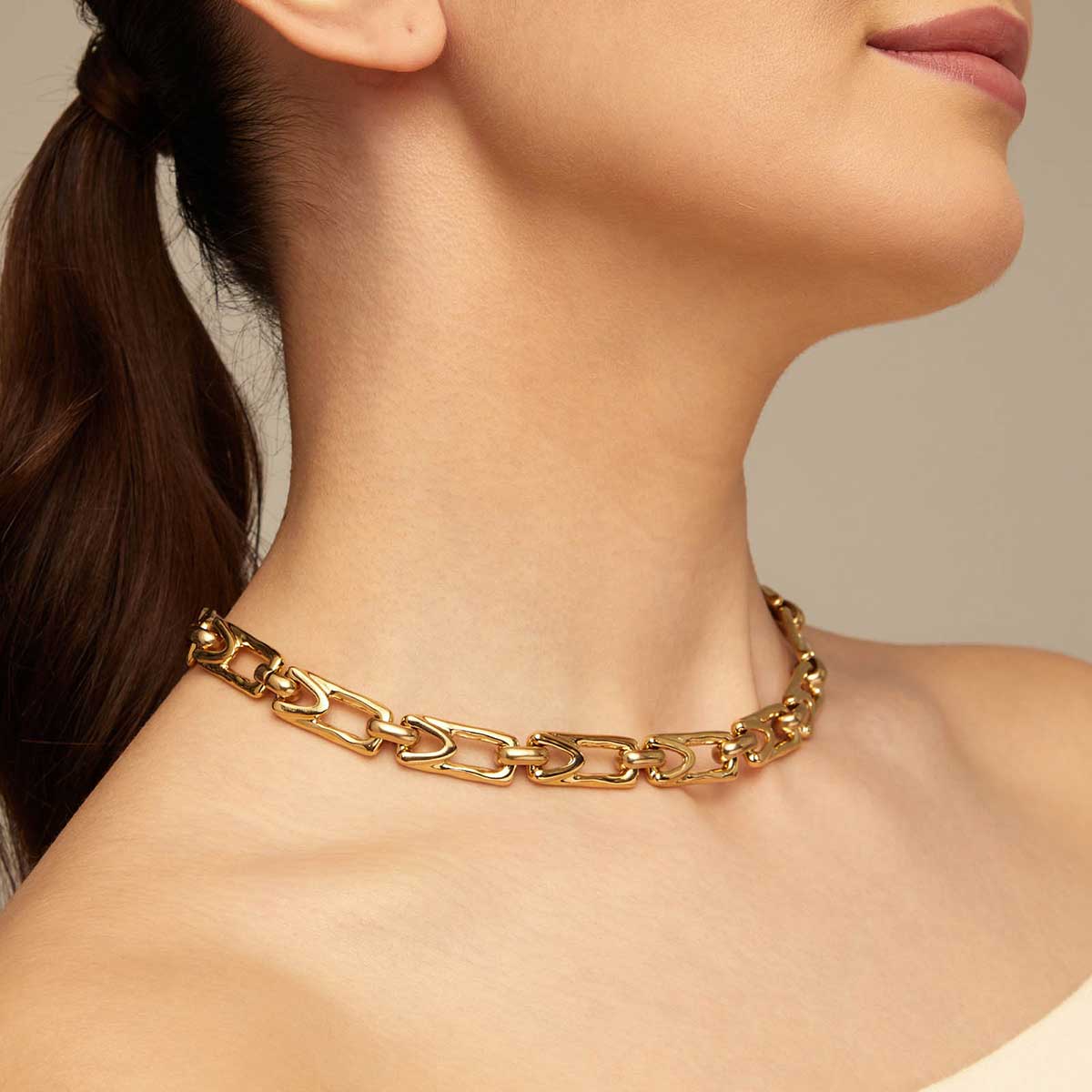 Золотое колье женское с прямоугольными звеньями UNOde50 Splendid