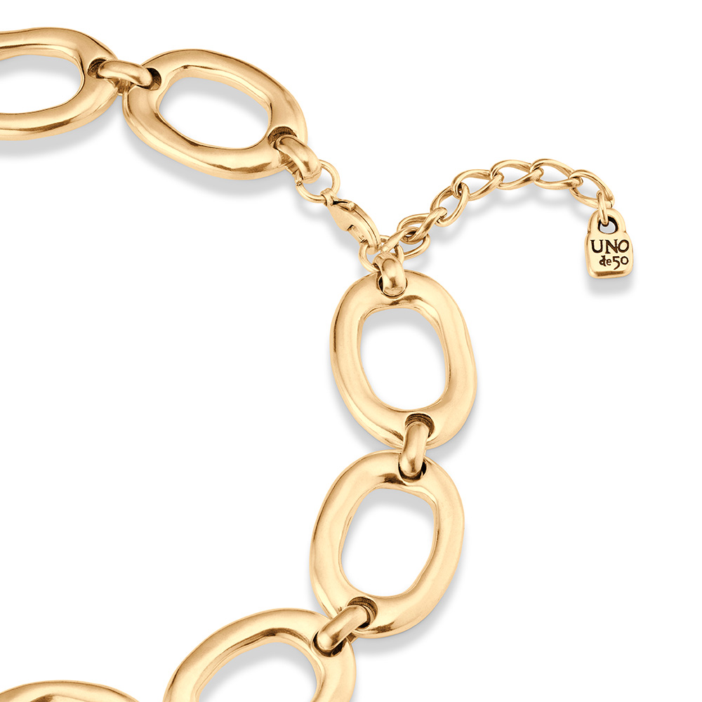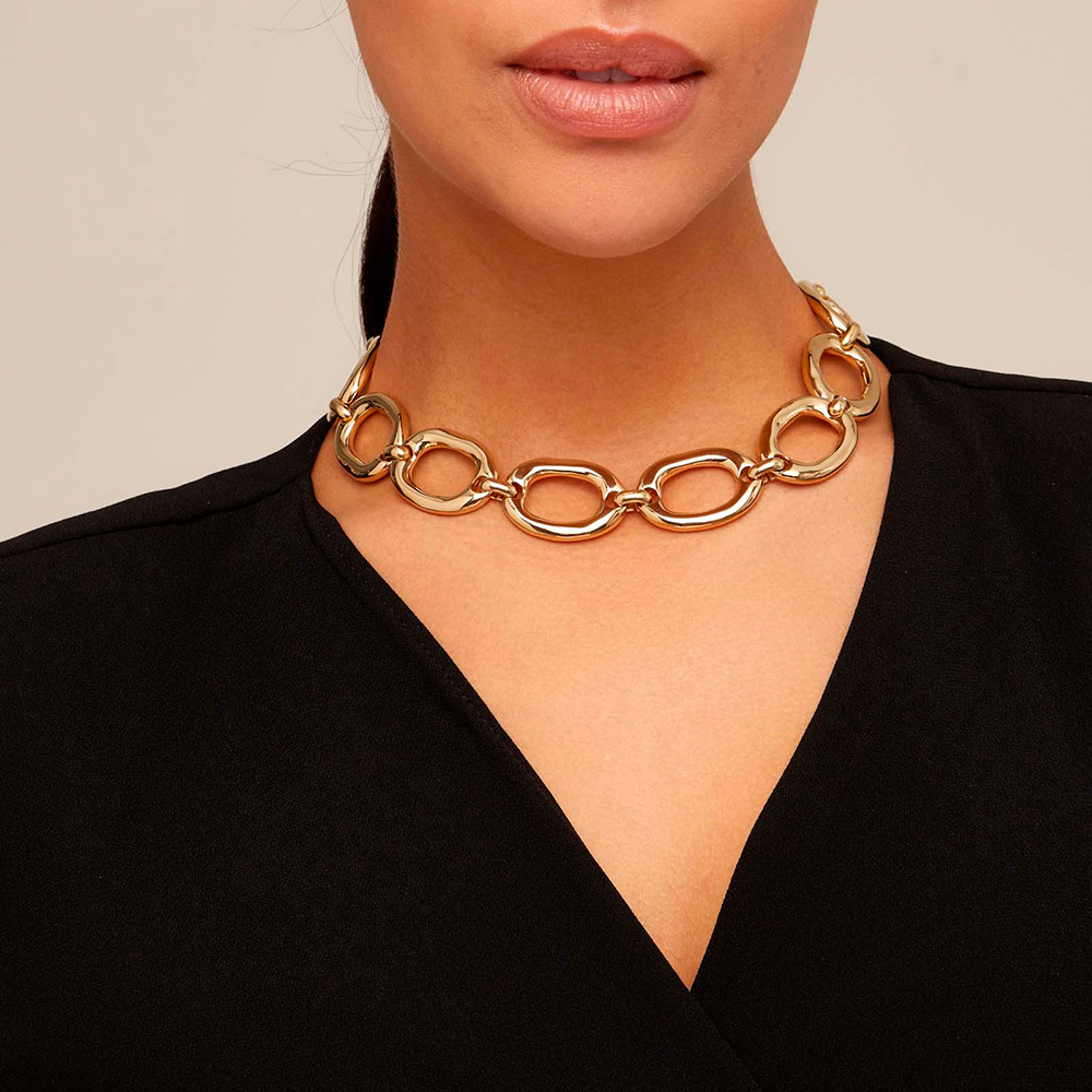 Восхитительное ожерелье The One с золотом – это яркое, стильное украшение, подходящее для создания самых разнообразных образов. Выполненное в виде цепочки с очень крупными звеньями колье имеет укороченную длину и идеально ложиться на ключицы, выгодно подчеркивая линию шеи. Благодаря регулируемой застежке изделие можно подстроить до оптимального размера. Изготовленное из уникального сплава с позолотой ожерелье – это ювелирное украшение премиум-класса, созданное с помощью ручной работы и являющееся эксклюзивным роскошным аксессуаром.