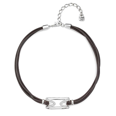 Описание Серебряное колье женское кожаное с центральным элементом в топазах UNOde50 The One Topaz