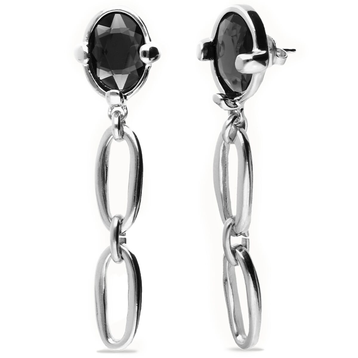 Описание Серебряные серьги-цепи с черным кристаллом UNOde50