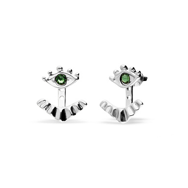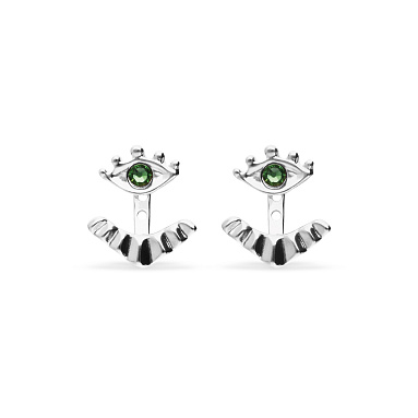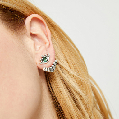 В центре каждой серьги мерцает зелёный кристалл, глубокий и загадочный, словно взгляд, который обещает приключения и хранит нераскрытые секреты. Его мерцание словно оживает при каждом движении, напоминая о дремучих лесах, где за каждым поворотом скрываются чудеса.