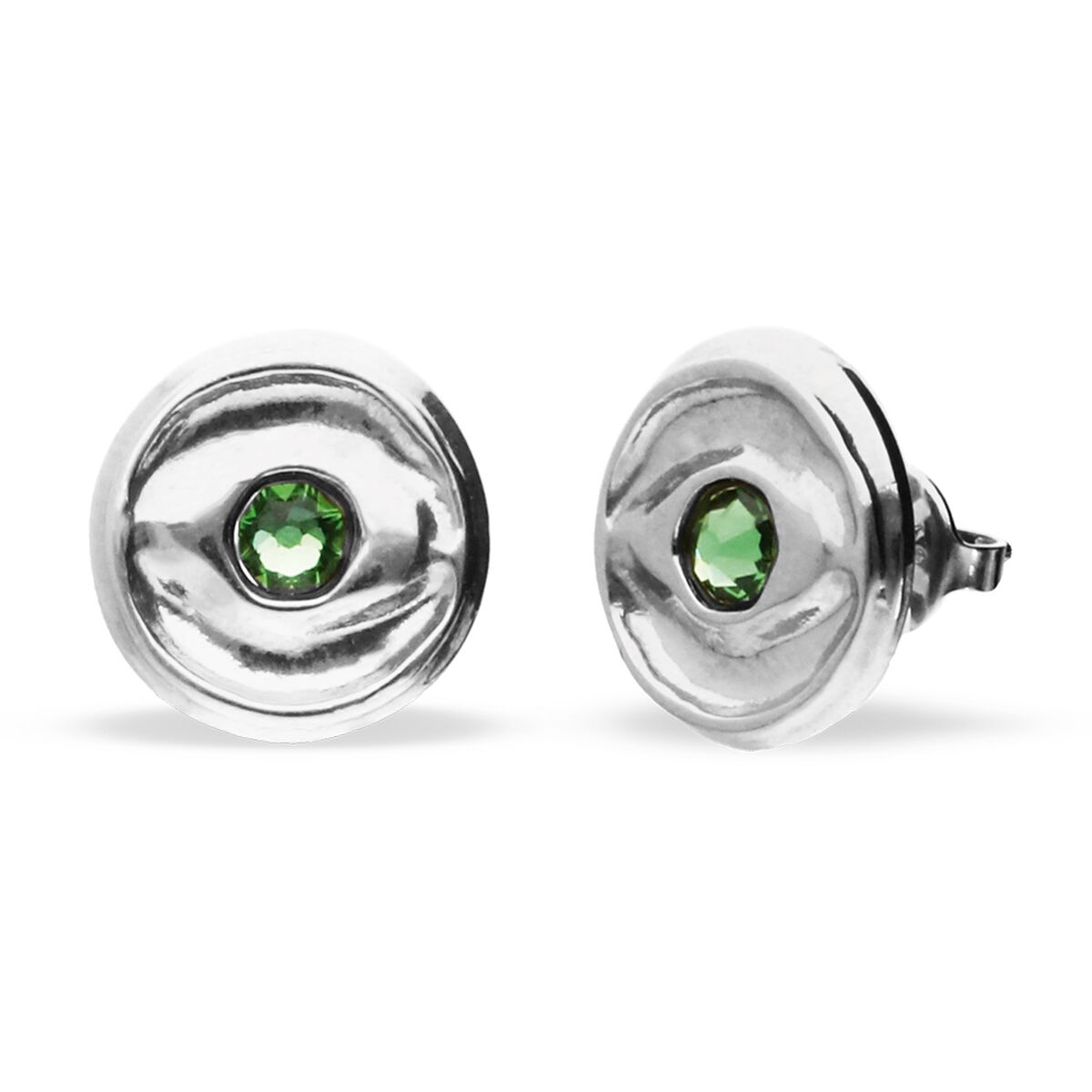 В центре каждой серьги сверкает зелёный кристалл, такой свежий и живой, как первые листья в утренних лучах. Его мягкие переливы подчёркивают озорной блеск в глазах и делают образ ещё более трогательным и женственным.