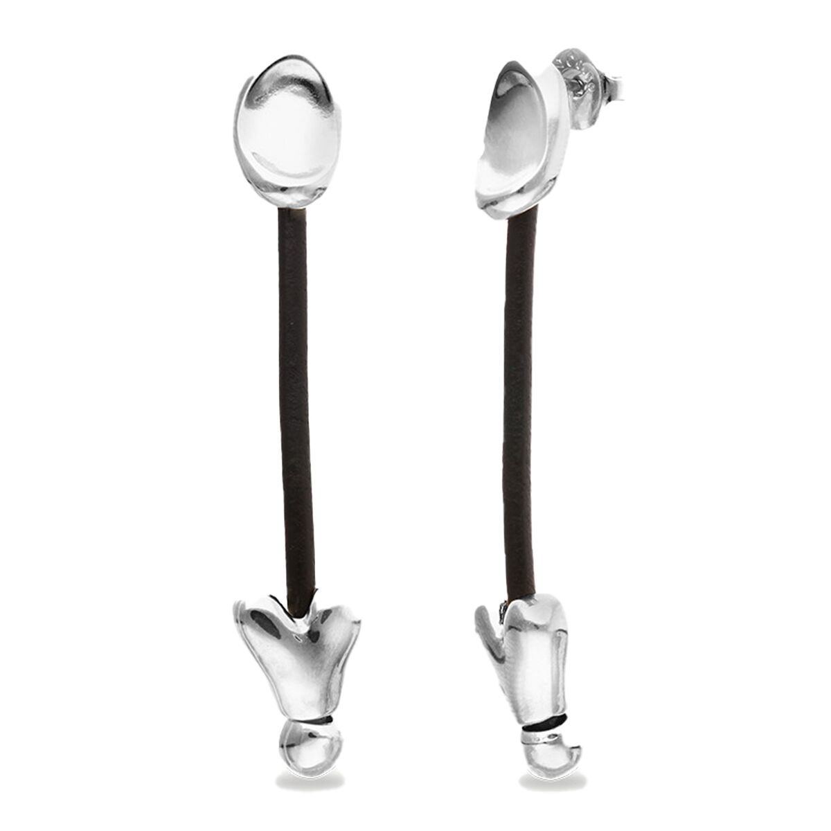 Особенности Серебряные серьги женские с натуральной кожей UNOde50 Beat