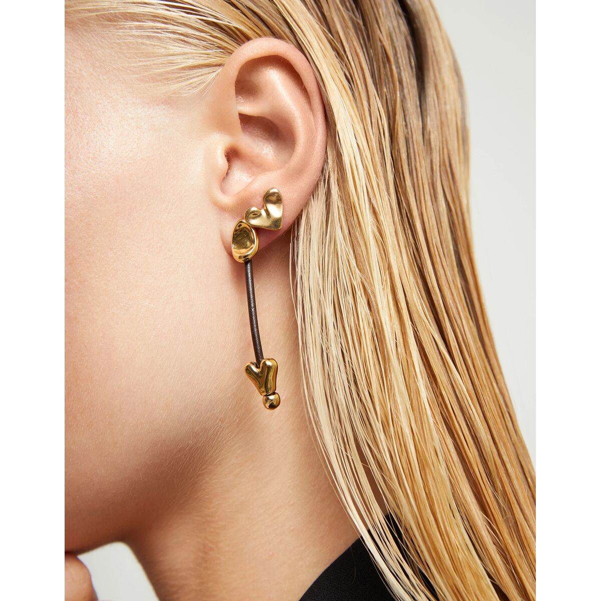 Серьги «Стрелы Купидона» — украшение из коллекции Beat о чувстве, которое настигает внезапно. Вытянутая форма серег повторяет силуэт стрелы: металлический элемент сверху обозначает начало, кожаный шнур выстраивает четкую линию полета, а сердце внизу становится точкой попадания.
