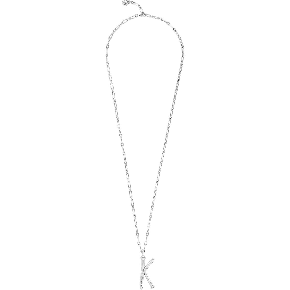 Особенности Серебряная подвеска на цепочку Буква K большая UNOde50