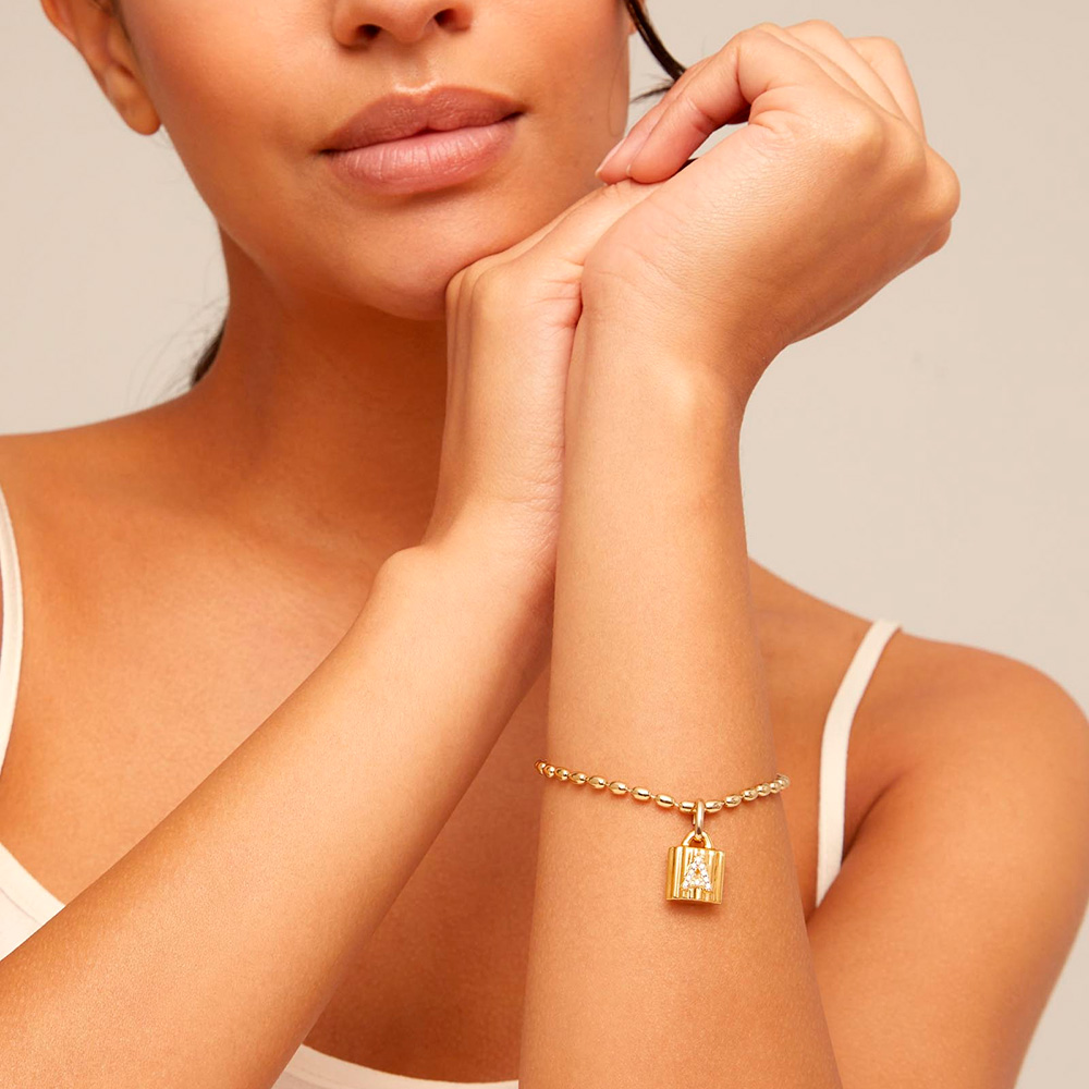 Особенности Золотая подвеска Замок с буквой из кристаллов Сваровски UNOde50 Mypadlock D