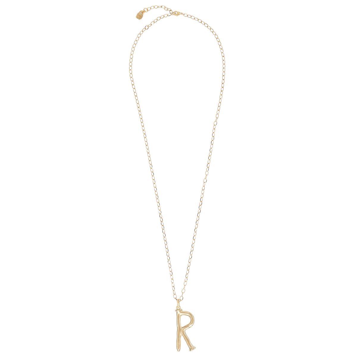 Особенности Золотая подвеска на цепочку Буква R большая UNOde50