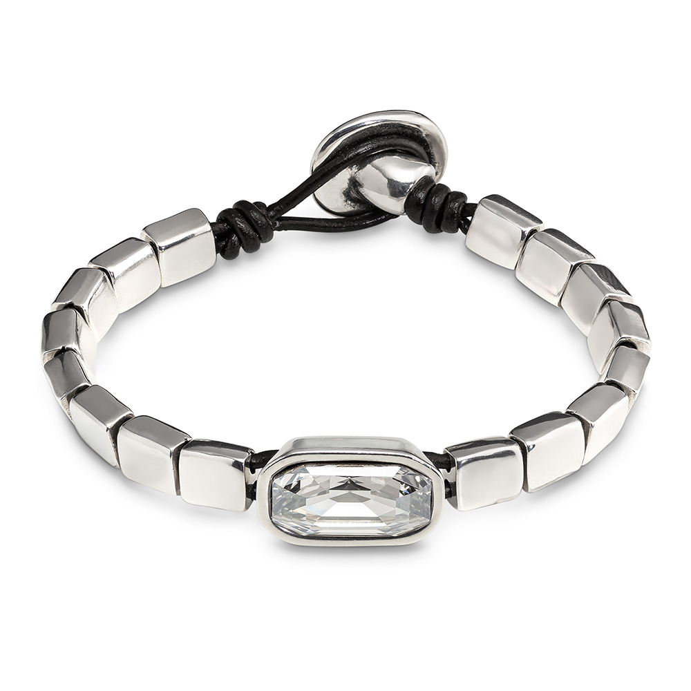 Серебряный браслет женский на коже с кристаллом Сваровски UNOde50 Anaconda