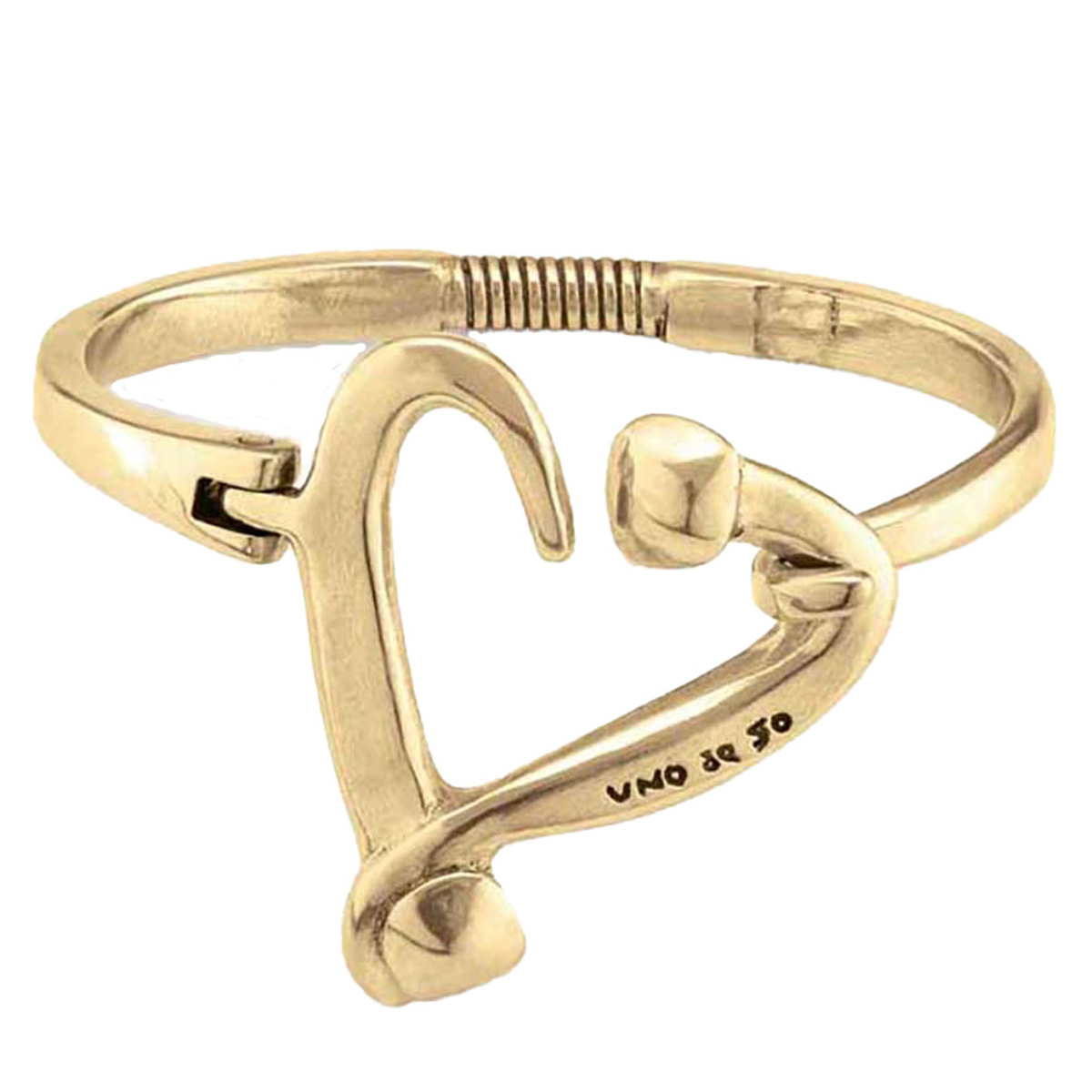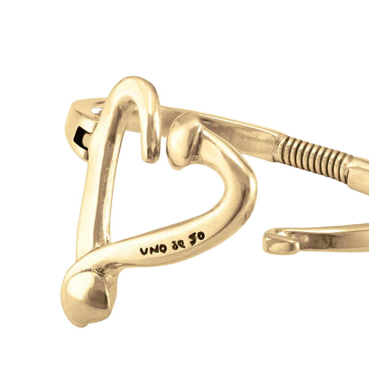 Жесткий браслет из ювелирного сплава с золотым покрытием, выполненный в романтическом стиле из двух гвоздей, изогнутых в форме сердца - каноническая форма UNOde50.