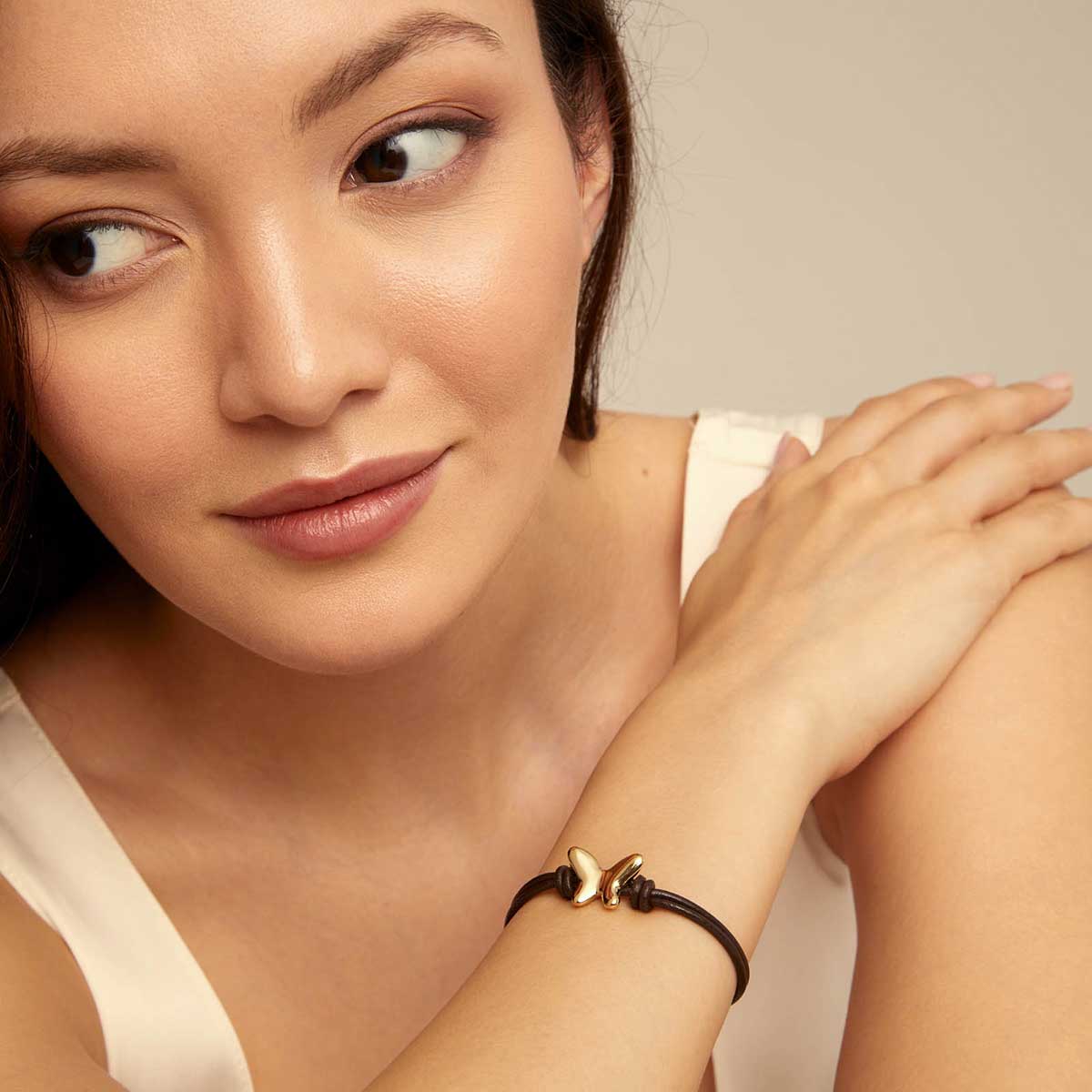 Кожаный браслет женский с золотом Бабочка UNOde50 Volare
