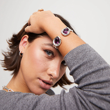 Добавьте в свой образ яркий акцент благодаря браслету SER VALIENTE с сиреневыми кристаллами. PUL2453RSAMTL. Этот аксессуар, изготовленный вручную из уникального сплава, сочетает в себе элегантность и смелость, что делает его идеальным выбором для тех, кто не боится привлекать внимание. Жесткий браслет выполнен в виде разомкнутого круга, концы которого украшают два крупных граненных кристалла яркого цвета фуксии. Камни, заключенные в текучие посеребренные оправы необычной формы, привлекают внимание своей глубиной и насыщенностью. Аксессуар станет не просто украшением, а творческим способом выразить себя. Он добавит вашему образу яркости, становясь идеальным акцентом как для повседневного наряда, так и для особых случаев. Дополните браслет кольцом арт. ANI0826RSAMTL в аналогичном дизайне, чтобы сиять еще ярче!