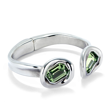 Почувствуйте гармонию природы благодаря браслету SER VALIENTE со светло-зелеными кристаллами, с серебром. Изготовленный вручную из уникального сплава аксессуар идеально подходит тем, кто ценит природное изящество и элегантные украшения. Браслет выполнен в виде разомкнутого металлического кольца, на концах которого расположены два граненных кристалла нежного светло-зеленого цвета. Камни, заключенные в плавные посеребренные оправы, символизируют свежесть и гармонию. Это эксклюзивное украшение станет вашим стильным спутником как в повседневной жизни, так и на особых мероприятиях. Подчеркивая связь с природой, оно добавит вашему облику нотку нежности и подчеркнет естественную красоту. А для еще более гармоничного образа дополните браслет кольцом арт. ANI0826VRCMTL в аналогичном дизайнерском решении.