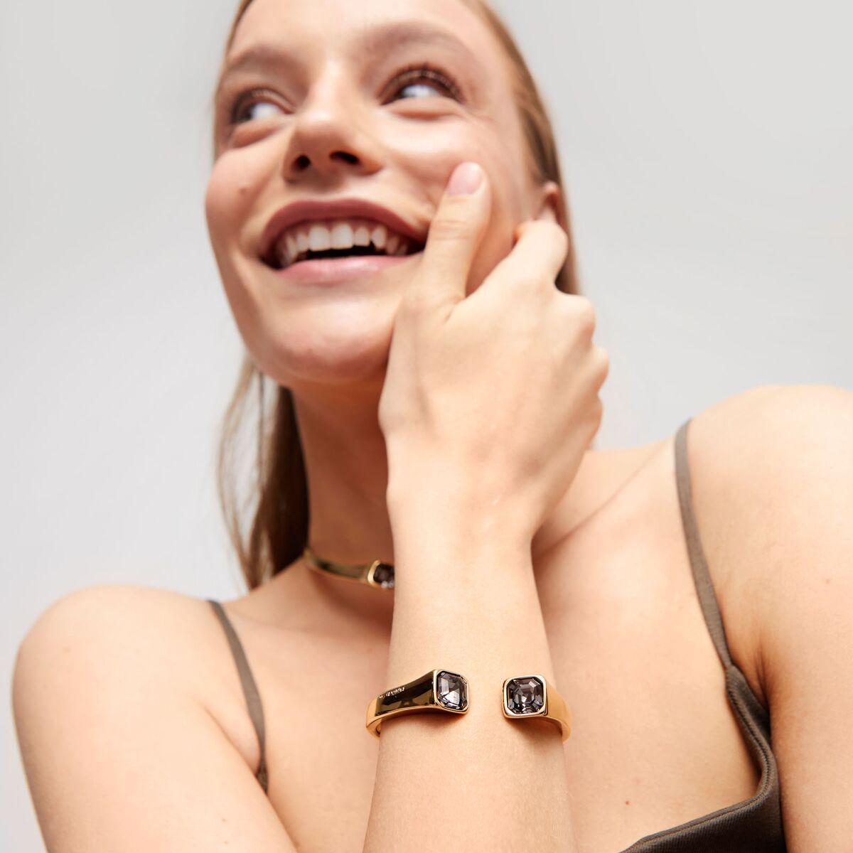 Особенности Золотой браслет жесткий с кристаллами Сваровски UNOde50 Ser Sin Complejos