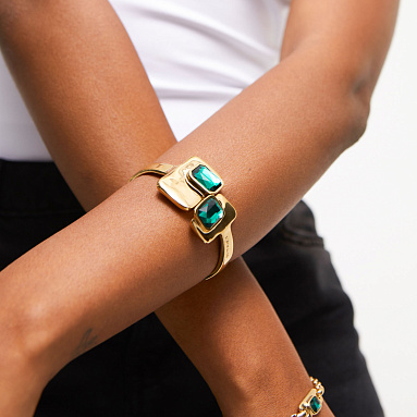 Описание Золотой браслет жесткий с кристаллами Сваровски UNOde50 Ser Magnetica