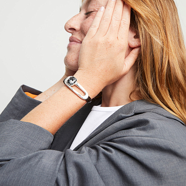 Описание Серебряный браслет с натуральной кожей и кристаллом Сваровски UNOde50 Ser Expresiva