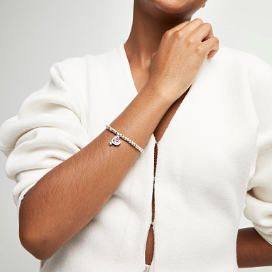 Раскройте свою индивидуальность с помощью браслета Ser Expresiva с розовым кристаллом, с серебром. Украшение, изготовленное вручную из уникального сплава, представляет собой цепочку из металлических бусин, украшенную подвеской. Центральным акцентом выступает розовый граненный кристалл, обрамленный в утонченную оправу. Она словно обвивает камень, образуя форму, похожую на сердце. Сочетание нежного оттенка кристалла и блеска серебрения добавляет загадочности и элегантности образу. Фирменная гравировка UNOde50 подчеркивает эксклюзивность изделия. Браслет идеально подходит как для повседневного ношения, так и для особых случаев, подчеркивая неповторимость вашего стиля.