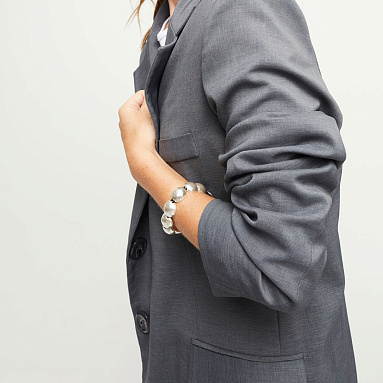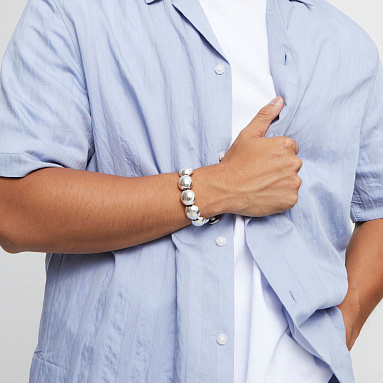 Подчеркните свой уникальный стиль с помощью браслета Ser Intrepida с серебром, изготовленным вручную. Аксессуар состоит из крупных гладких полусфер, выполненных из высококачественного сплава. Зеркальная поверхность и блеск серебрения создают эффектное визуальное впечатление. Кожаная основа добавляет выразительный контраст. Универсальный лаконичный дизайн украшения подходит к любому образу, как праздничному, так и повседневному. Идеальный аксессуар для тех, кто предпочитает эксклюзивные решения и минималистичный дизайн.