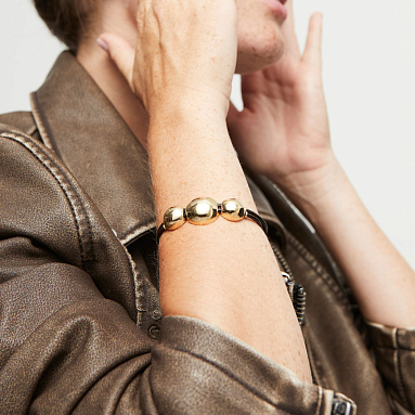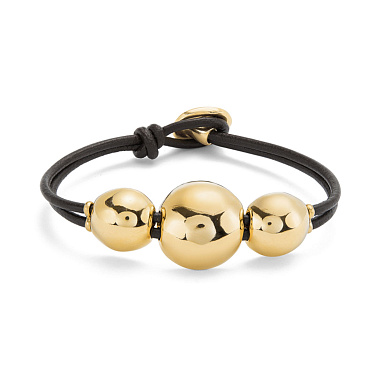 Золотой браслет из бусин с натуральной кожей UNOde50 Ser Intrepida